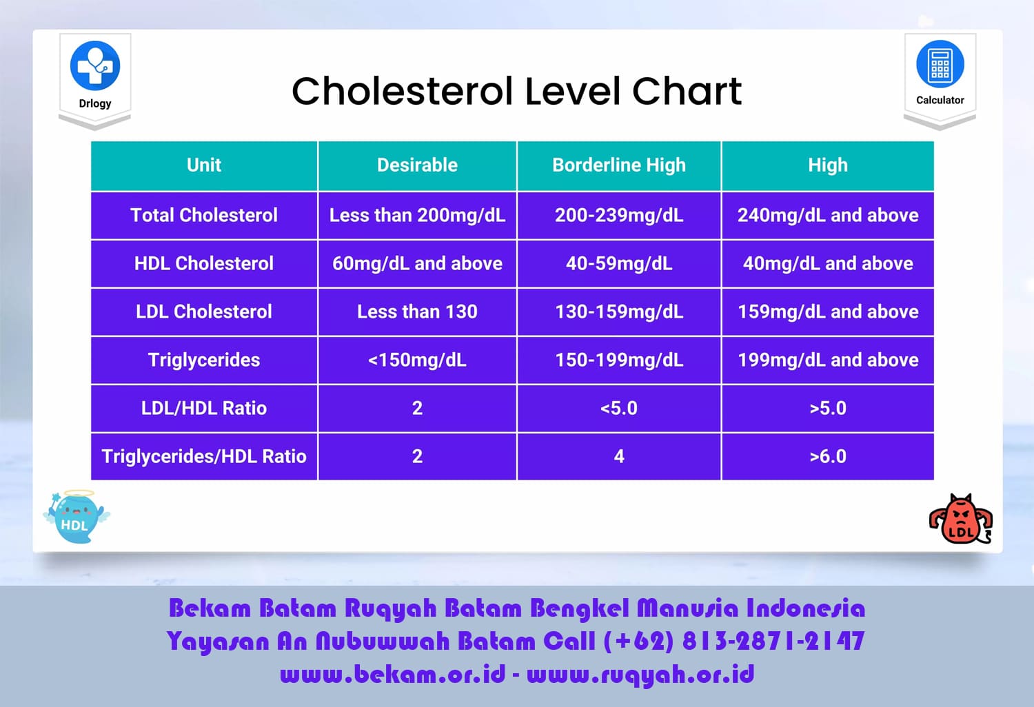 Sedangkan kolesterol HDL (baik) sebaiknya di atas 40 mg/dL untuk pria dan 50 mg/dL untuk wanita.
